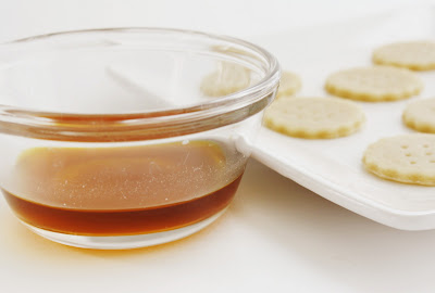 After you cut out the cookies and before you bake them, mix some yellow food coloring with some water and just a tiny, tiny bit of brown to make a gold-ish color. Or, you know, use gold food coloring if you have it.